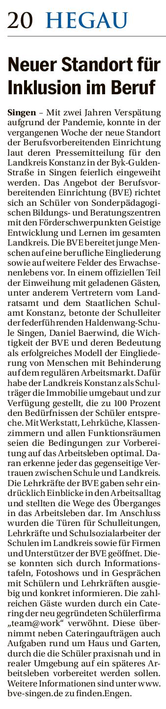 Mit großer Freude konnten wir ein neues Fahrzeug für die BVE entgegennehmen. Das Pritschenfahrzeug mit Platz für 6 Mitfahrer kommt bei den Aufträgen der Schülerfirma zum Einsatz. Die Finanzierung wurde komplett von der Haldenwang-Stiftung übernommen. Wir möchten uns ganz besonders bei Herrn Andreas Kunz (Stiftungsrat) für die großzügige Unterstützung bedanken!