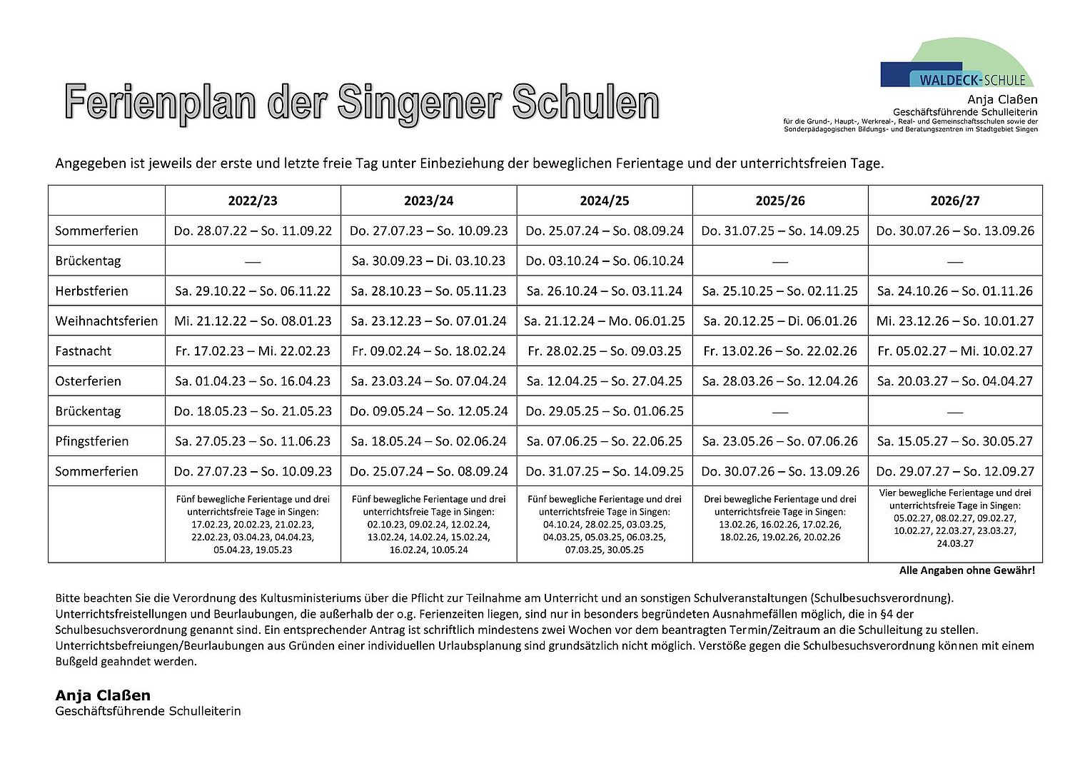 Ferienplan